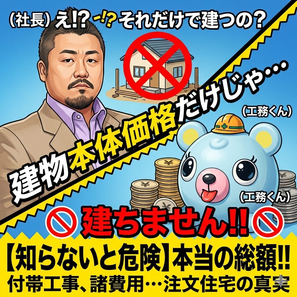 「結論から言うと。建物本体価格だけでは家は建たない。」