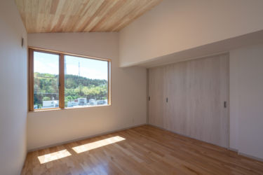 2階LDKに設けたプライベートバルコニーからは大年寺山の自然を借景する事で