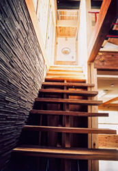 他にも、青森ヒバ、ヒノキ、県産材の杉板材と栃木産の日光杉のカウンター、タイル、珪藻土の塗壁と多彩な仕上げ材を使い分け、飽きの来ないワクワクする室内。
