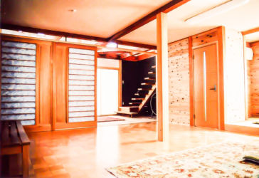 外観のデザインからは想像できない空間が広がる、近代古民家建築表現と言っても良いくらいの建物です。